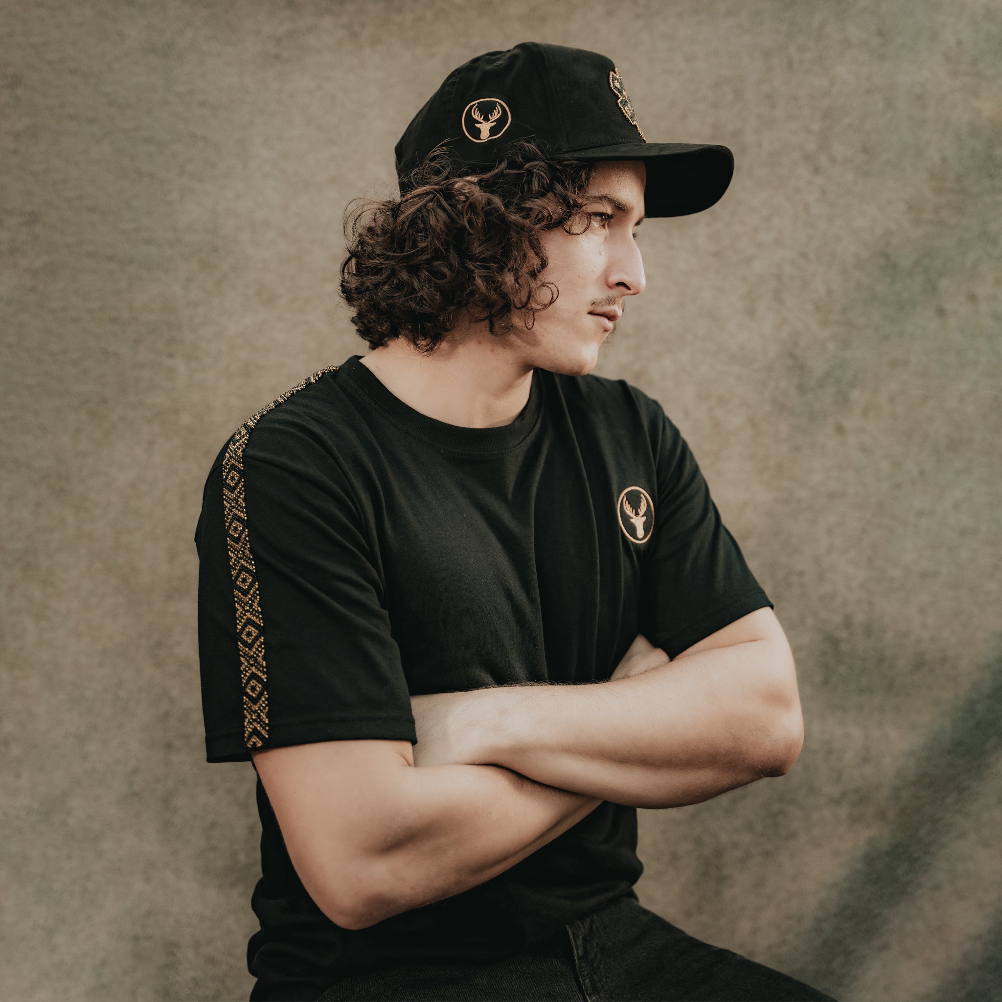 Confeccionada en algodón premium y acabados de alta calidad, esta playera destaca por su intervención artesanal en la manga, donde un patrón en chaquira negra y dorada da vida al ADN que ha definido a Huari durante una década: lujo, símbolo y tradición reinterpretada.