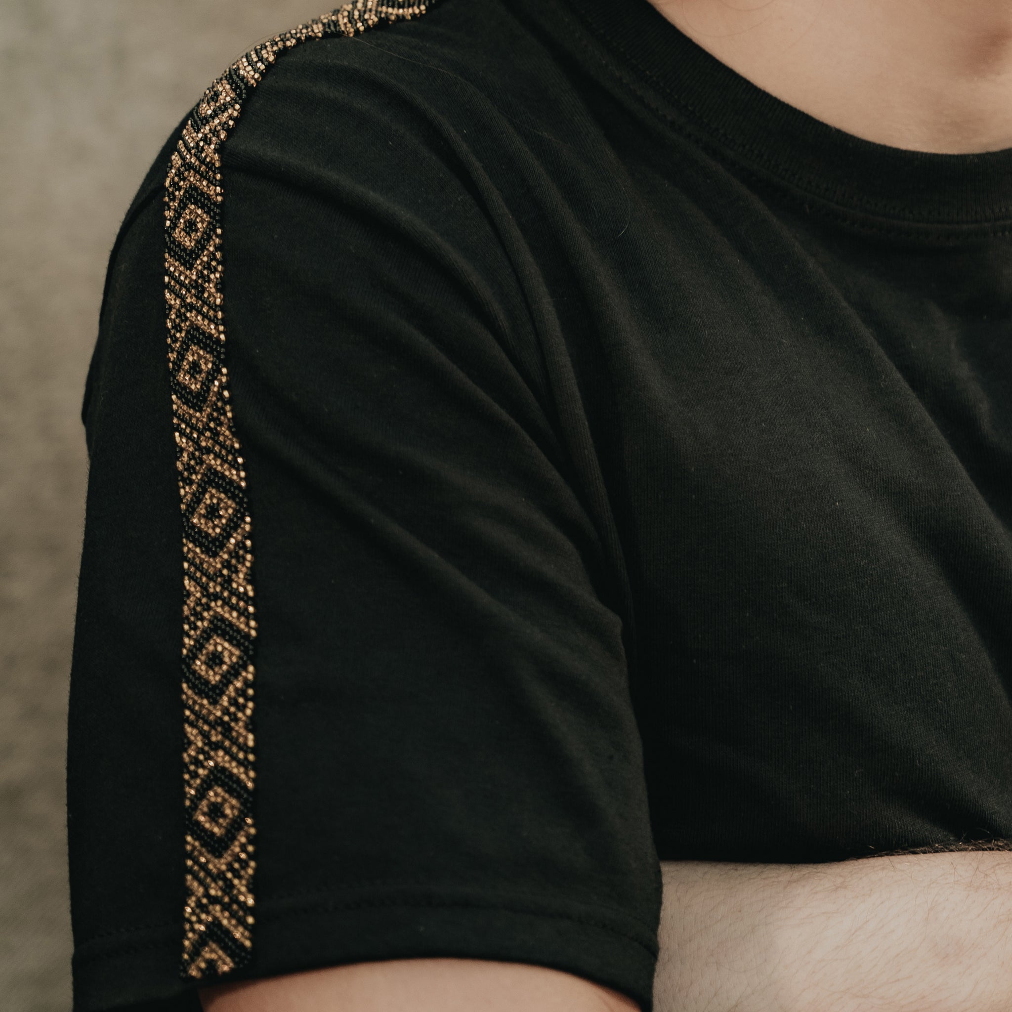 • Intervención: Chaquira en la manga (negro/dorado)
