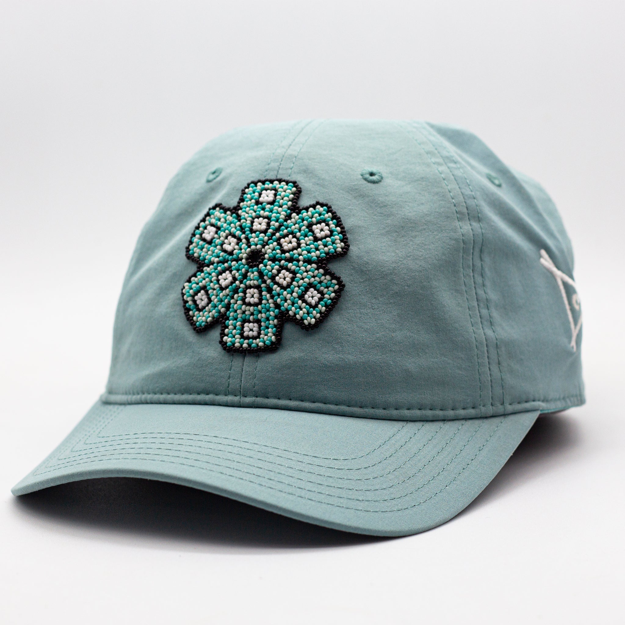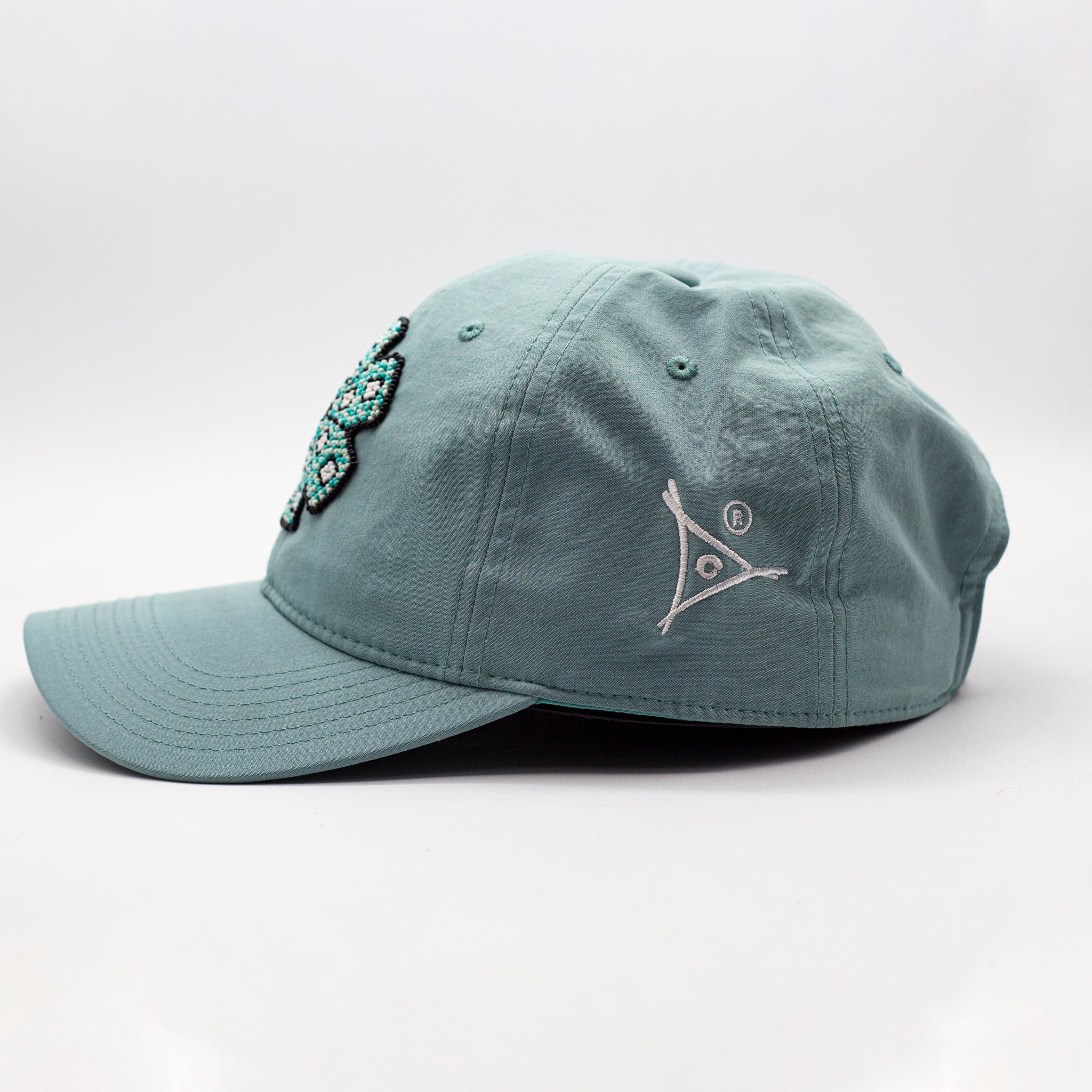 Descubre la esencia de la tradición y el diseño con esta gorra deportiva en color lila, resaltada por el impresionante bordado en chaquira del símbolo del Peyote , elaborado a mano por talentosos artesanos wixárikas.