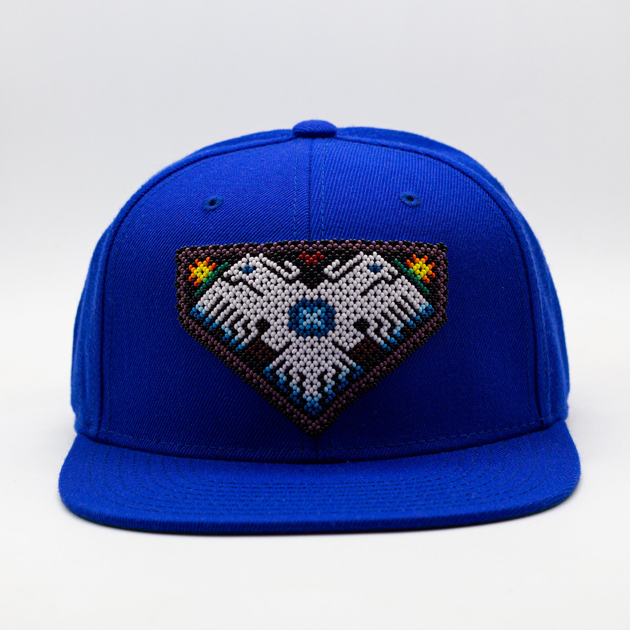 Destacada por el impresionante bordado en chaquira del símbolo del Águila de Dos Cabezas , elaborado a mano por talentosos artesanos wixárikas.